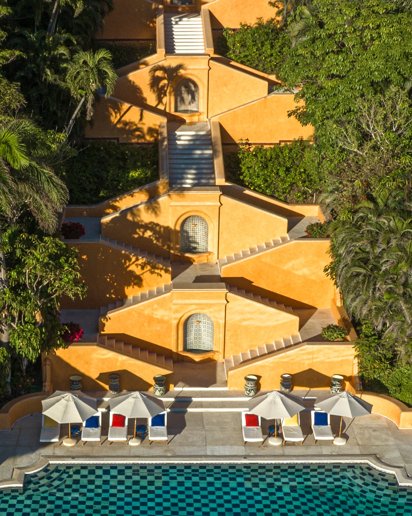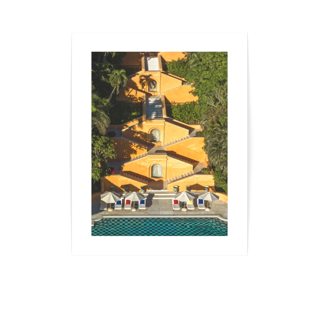 A vision of symmetry overlooking the sea, where design and coastline converge in quiet harmony. Miramar, from the series Brad Walls at Cuixmala.