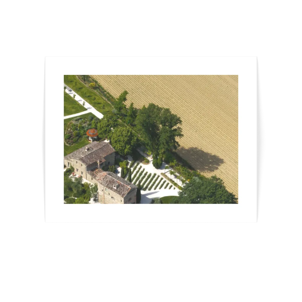 Photographed from above at Vocabolo Moscatelli in Umbria, Italy — this piece captures the harmony of stone, water, and light in Brad Walls’ signature geometric style.