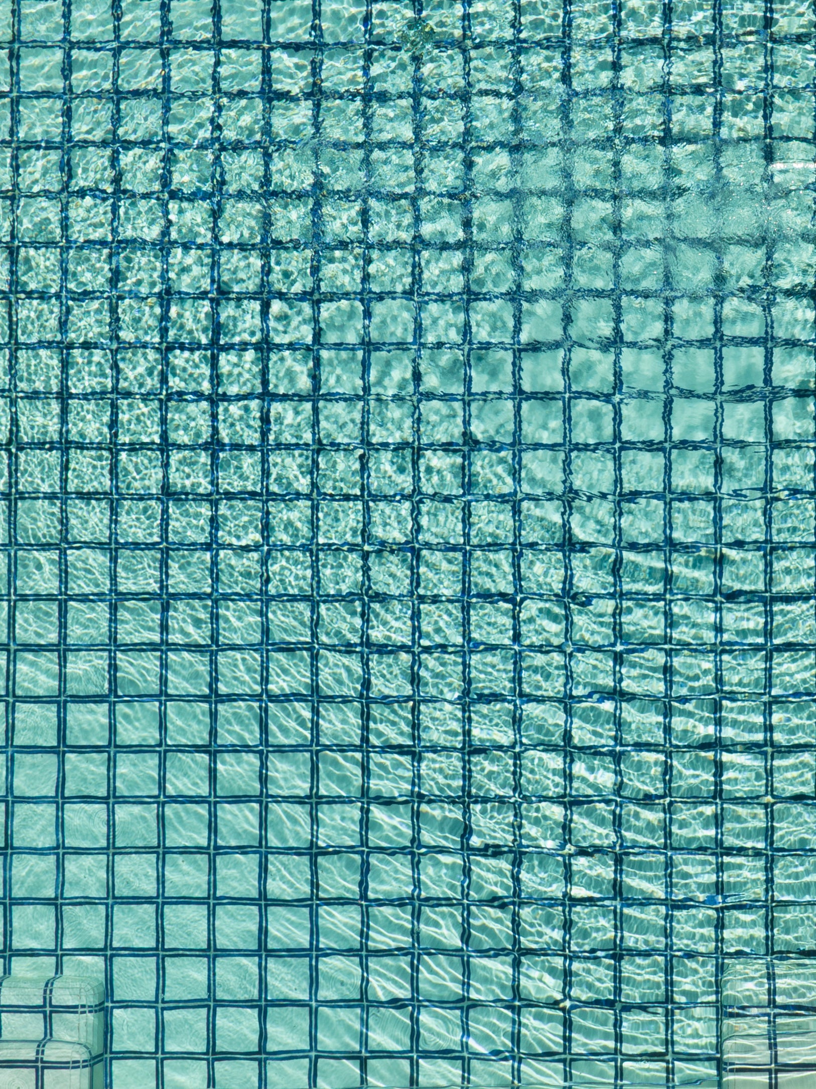 A quiet reflection of light and pattern, where ripples meet geometry in tranquil balance. Ocaso, from the series Brad Walls at Cuixmala.