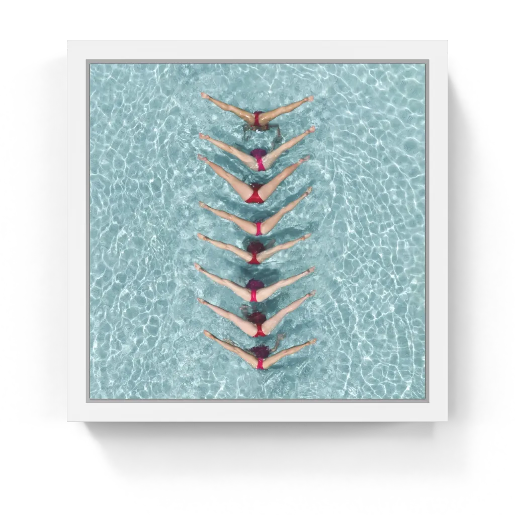 Allow for an additional 2 inches on each side when framed. A 24”x24” unframed print will measure about 26”x26” framed.
